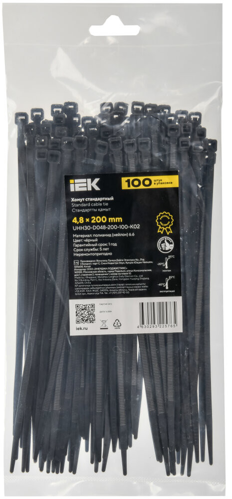 Хомут P6.6 стандартный черный 4.8х200мм 100шт/упак IEK (IEK) UHH30-D048-200-100-K02