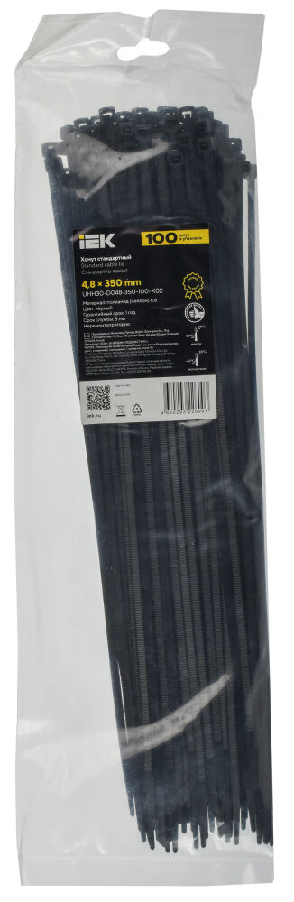Хомут P6.6 стандартный черный 4.8х350мм 100шт/упак IEK (IEK) UHH30-D048-350-100-K02