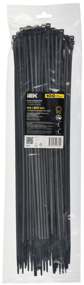 Хомут P6.6 стандартный черный 4.8х400мм 100шт/упак IEK (IEK) UHH30-D048-400-100-K02