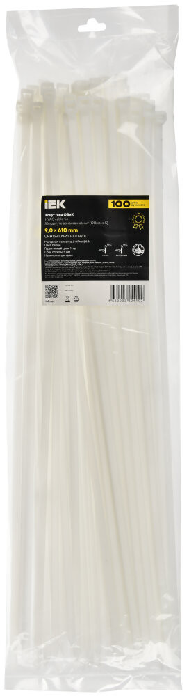 Полное описание товара Хомут P6.6 типа ОВиК белый 9.0х610мм 100шт/упак IEK (IEK) UHH15-009-610-100-K01