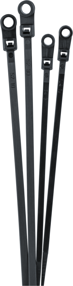 - Преимущества: Изготовлены из нейлона 6.6|Обеспечивают прочность и надежность фиксации|Монтажное отверстие позволяет прикрепить собранный пучок проводов к поверхности при помощи винта или самореза|Устойчивы к УФ-излучению, коррозии, воздействию солей, щелочей, масел, растворителей, химических веществ|Сохраняют прочность и пластичность при широком диапазоне температур