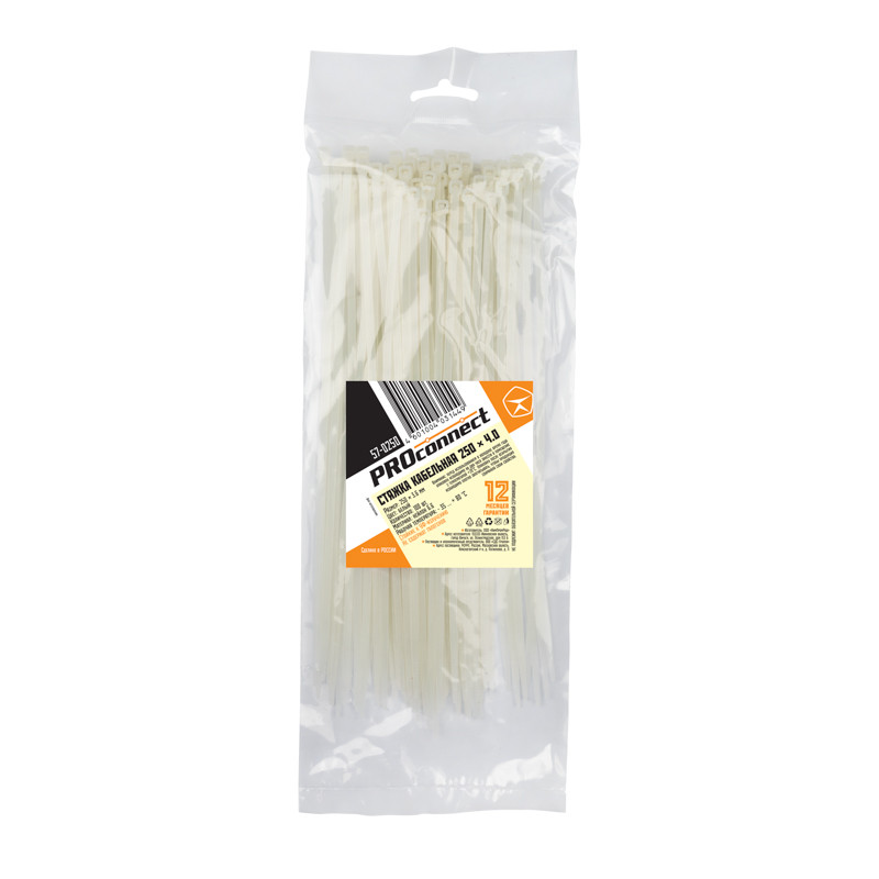Полное описание товара Хомут-стяжка кабельная нейлоновая 250x3,6 мм, белая, 100 шт (ProConnect) 57-0250