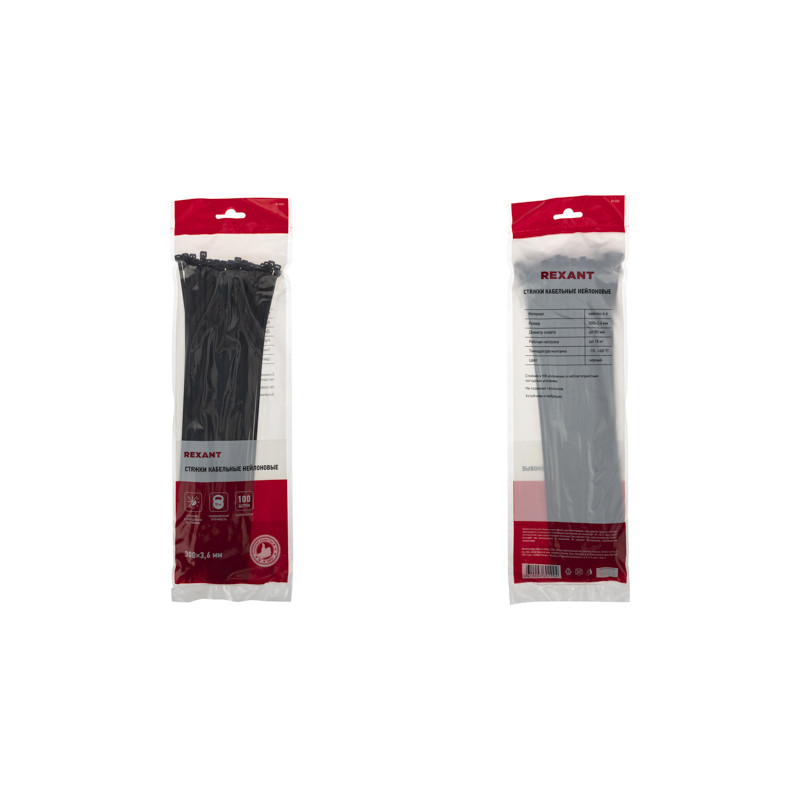 Полное описание товара Хомут-стяжка кабельная нейлоновая 300x3,6 мм, черная, упаковка 100 шт, REXANT (REXANT) 07-0301