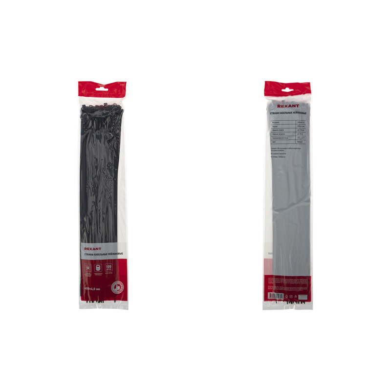 Полное описание товара Хомут-стяжка кабельная нейлоновая 450x4,8 мм, черная, 100 шт (REXANT) 07-0451-5