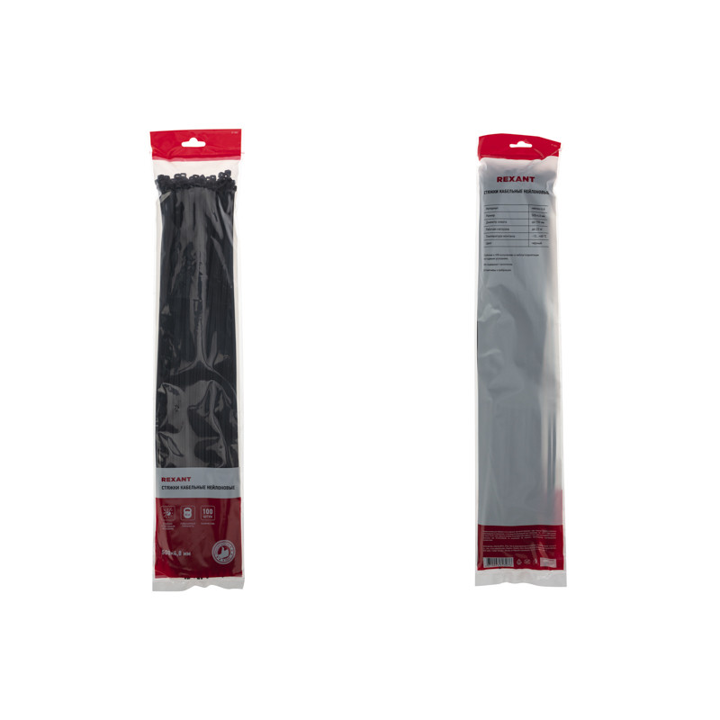 Полное описание товара Хомут-стяжка кабельная нейлоновая 500x7,6 мм, черная, 100 шт (REXANT) 07-0503
