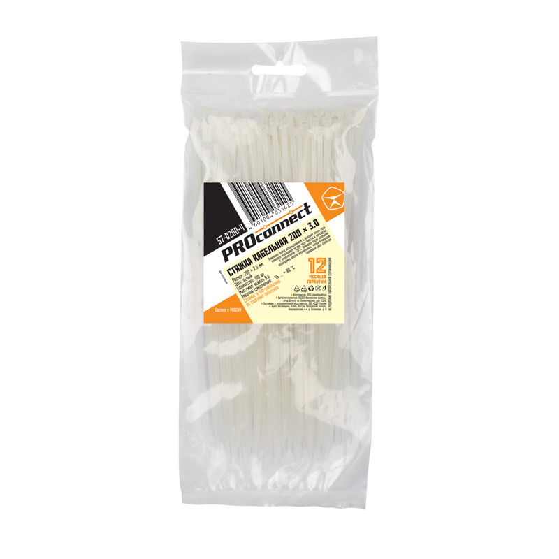 Хомут нейлоновый (кабельная стяжка) PROconnect предназначен для крепления или обвязки в жгут кабелей и проводов, крепления гибких гофротруб, а также других предметов к несущей поверхности или для соединения между собой. Такая стяжка используется при проведении электромонтажных работ, при монтаже структурированных кабельных систем, для бытовых нужд, а также в других отраслях народного хозяйства. Хомуты нейлоновые гарантируют качество, оперативность и экономичность профессионального электромонтажа, обеспечив максимально надежную фиксацию предметов.