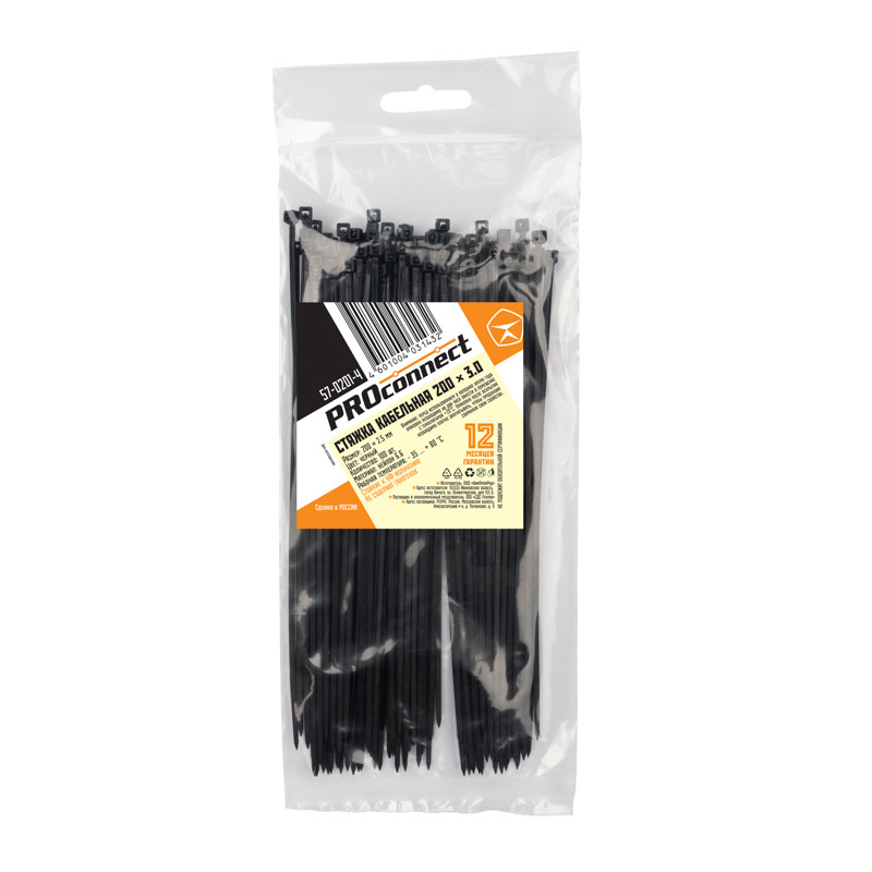 Полное описание товара Хомут-стяжка кабельная нейлоновая PROconnect 200x2,5 мм, черная, 100 шт (ProConnect) 57-0201-4