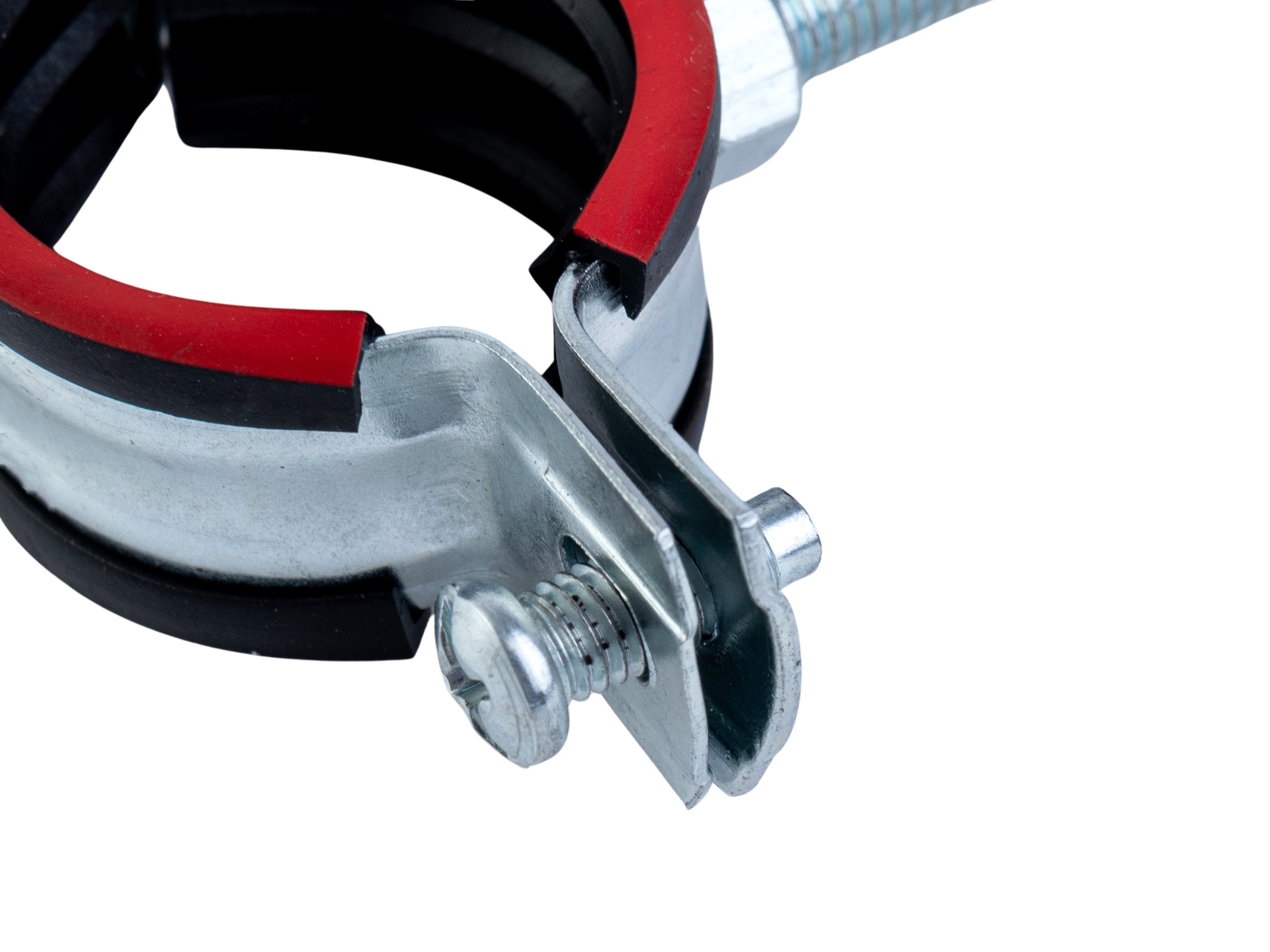 Сантехнические трубные хомуты для крепления водопроводных и канализационных труб по ГОСТ 24140-80 являются чрезвычайно востребованной позицией. Выпускаются хомуты всех трубных размеров. Хомуты снабжены резиновым профилем и приварной гайкой. Стандартные металлические крепежи с резиновым профилем предлагаются с болтом на М8 или М10.