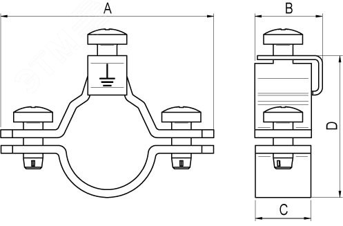 Хомут заземления для труб 63 мм (2'). Материал: сталь с цинковым покрытием, нанесенным методом гальванического цинкования. Возможно подключение проводниковсечением до 16 квадратных мм. Назначение: заземление, зануление и уравнивание потенциалов стальных труб.