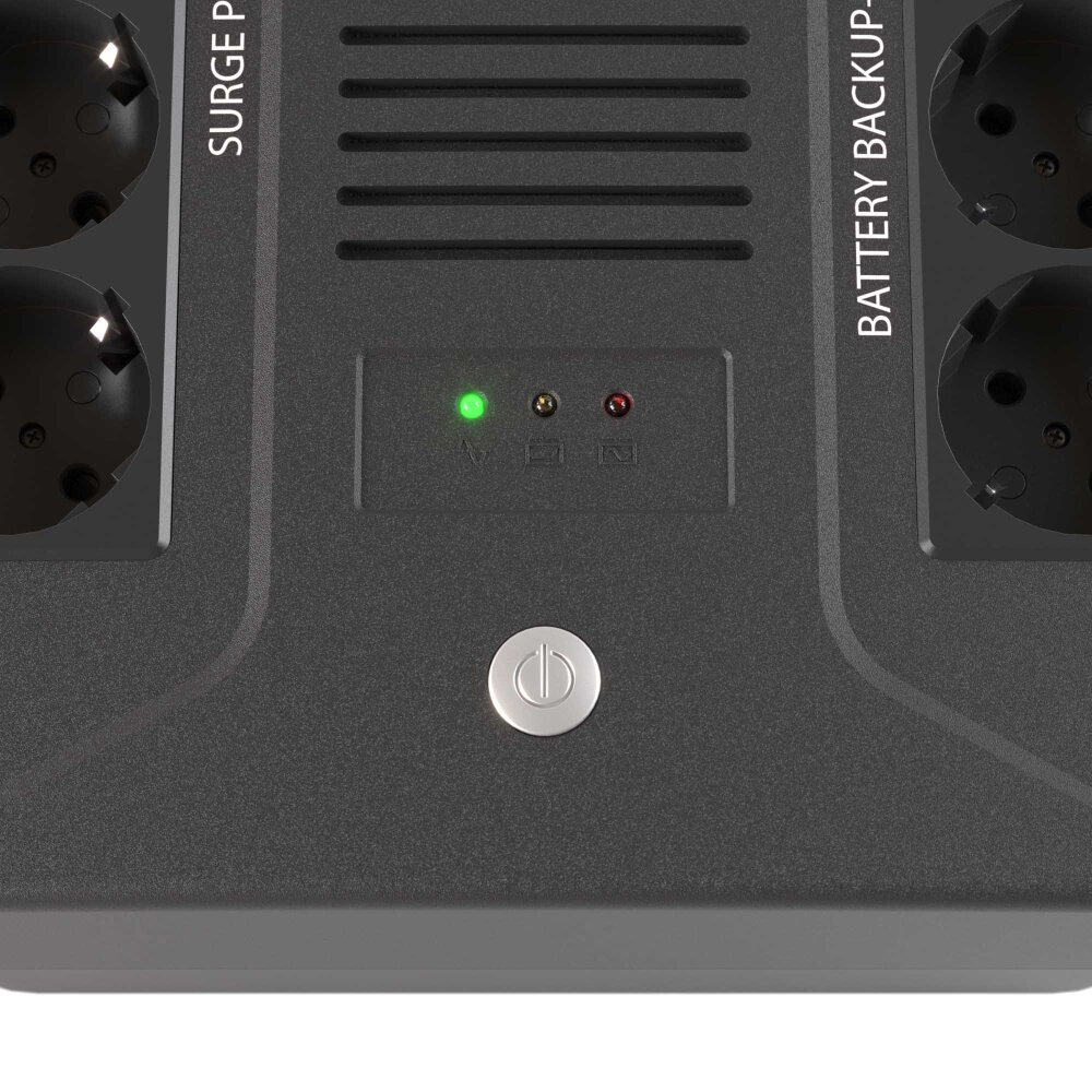 Источники бесперебойного птания серии INFO PDU с 8 розетками Schuko, линейно-интерактивная топология 600, 800 и 1000 ВА. Предназначены как домашнего, так и коммерческого применения. Они обеспечивают бесперебойное питание компьютеров и оргтехники на рабочих местах, а также защищают домашние электроприборы от внезапного отключения питания. Источники бесперебойного питания серии Info PDU относятся к категории линейно-интерактивных ИБП малой мощности.