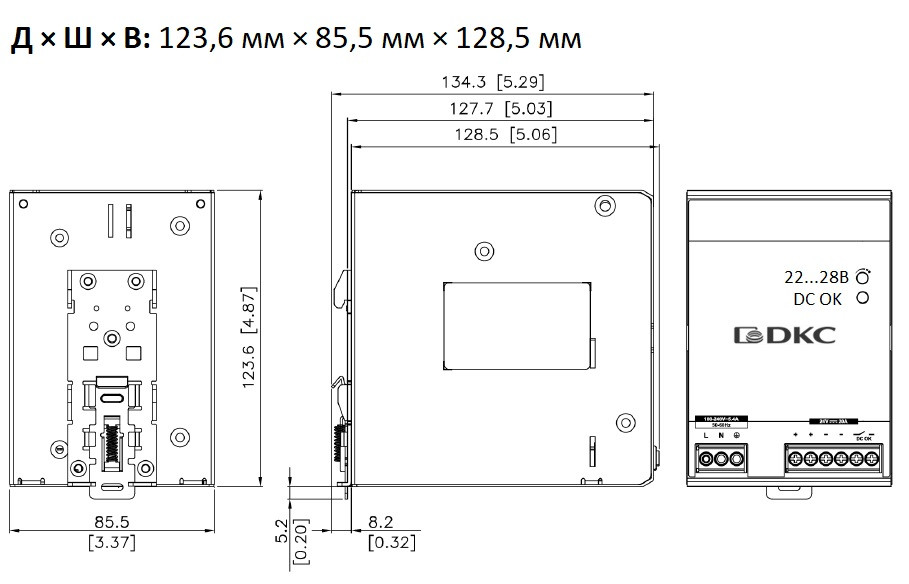 Полное описание товара Источник питания ''ECO POWER'', однофазный, 480Вт, 20А, 24В (DKC) DPSL480W24V