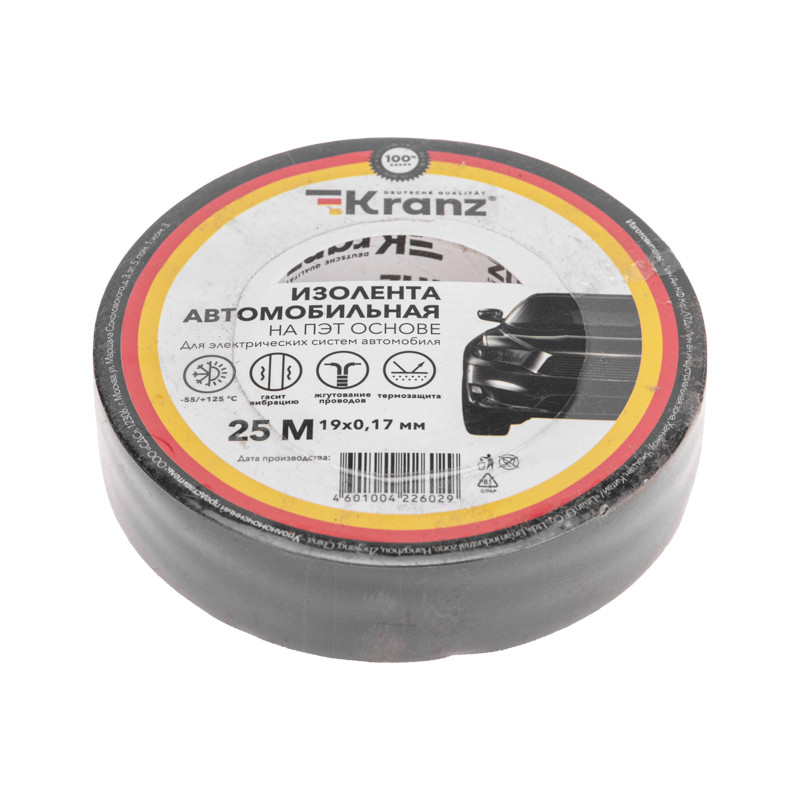 Изолента автомобильная, полиэстер, 0.17х19 мм, 25 м (Kranz) KR-09-2916