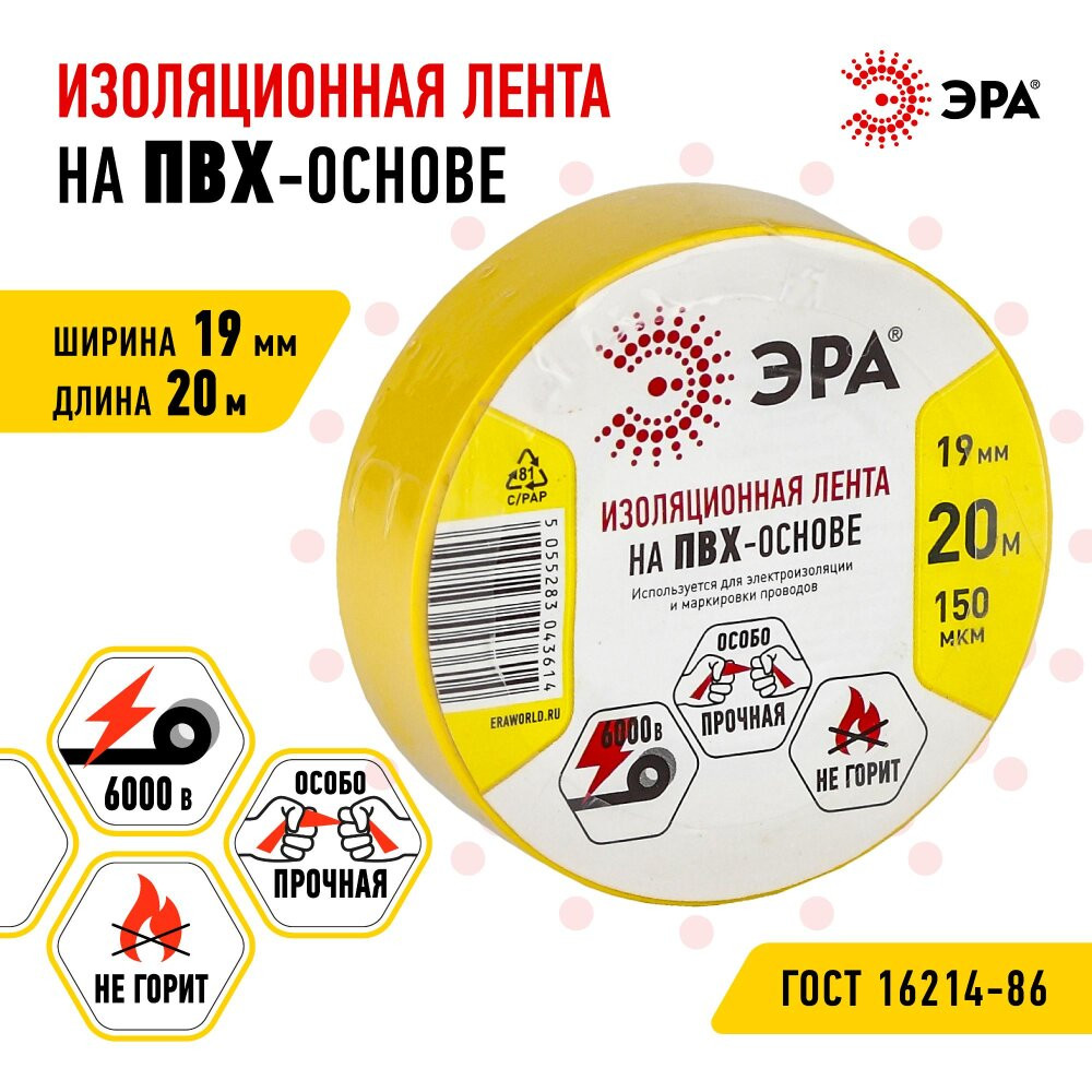 Полное описание товара Изолента ПВХ 19мм*20м желтая (10/200/6400) (ЭРА) C0036543