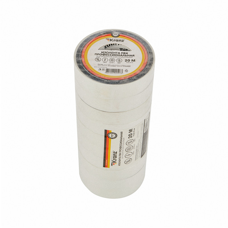 Полное описание товара Изолента ПВХ профессиональная, 0,18х19 мм, 20 м, белая (Kranz) KR-09-2801