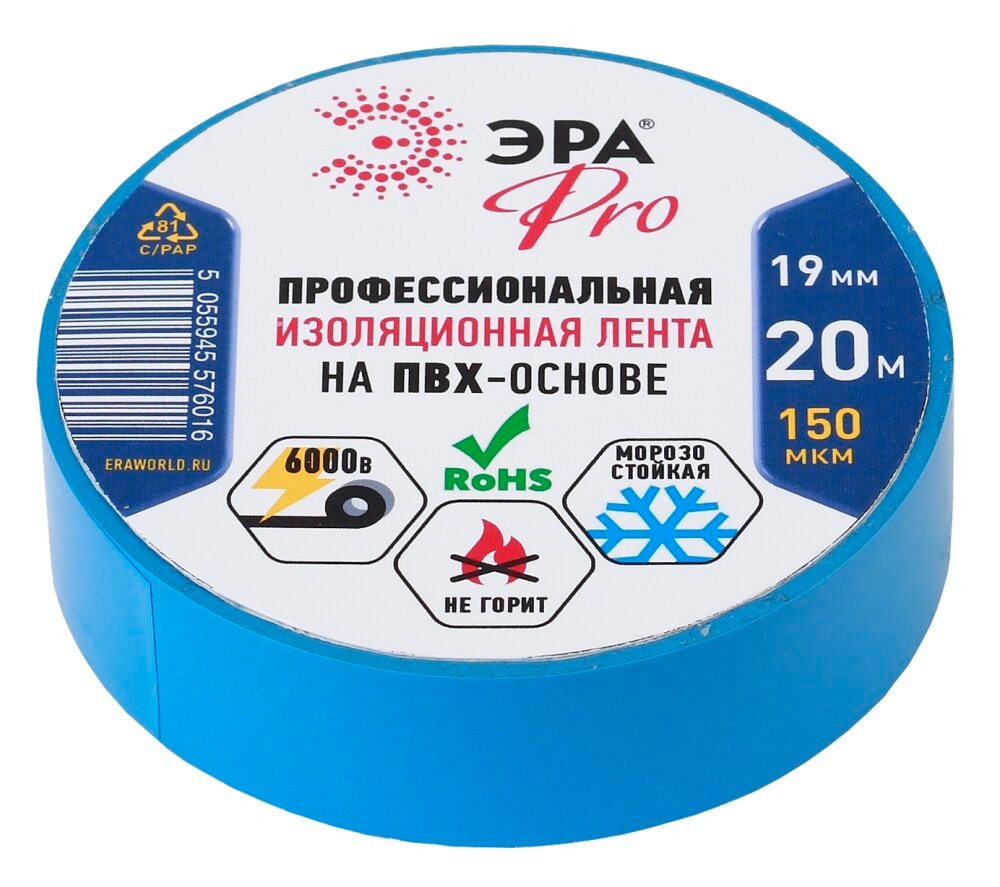 Полное описание товара Изолента ПВХ Профессиональная 19мм*20м 150 мкм, синяя (5/200/6000) (ЭРА) Б0027918