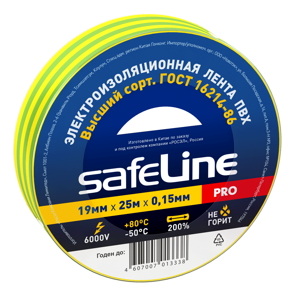 Изоляционная лента Safeline серии PRO предназначена для проведения электромонтажных работ при напряжении до 600V и рекомендуется для профессионального и бытового применения. Изолента Safeline устойчива к воздейтвиям UV-лучей, истиранию, старению, влажности и коррозии металлов. Для обеспечения высоких стандартов качества при производстве изоленты используется два уровня контроля. Высший сорт ГОСТ 16214-86.