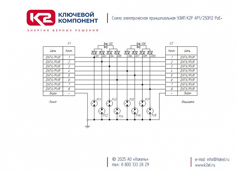 Полное описание товара К2Р АР1/250М2 PoE+ - устройство защитное (Ключевой Компонент (Хакель)) Р400 069