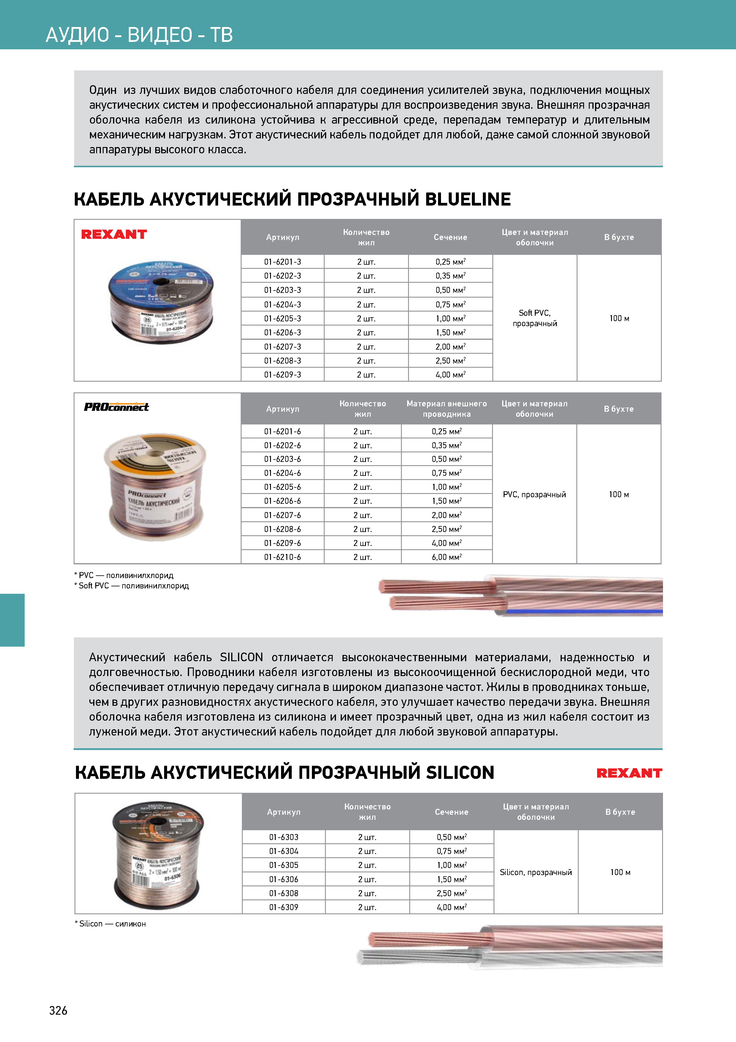 Полное описание товара Кабель акустический 2х0,35 мм2, прозрачный BLUELINE, 100 м (ProConnect) 01-6202-6