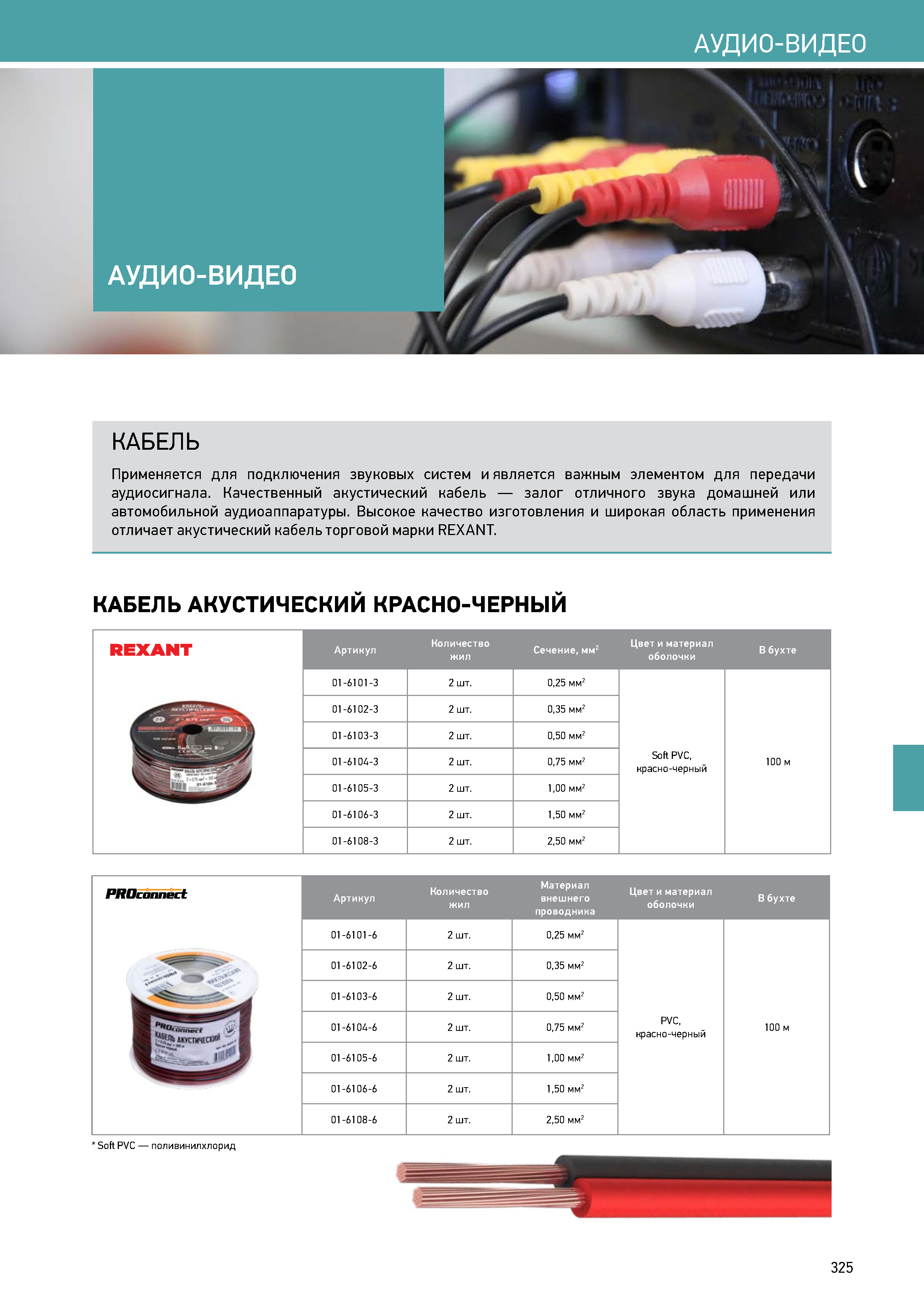 Полное описание товара Кабель акустический ШВПМ 2х0.75 кв.мм красно-черный 100 м (ProConnect) 01-6104-6