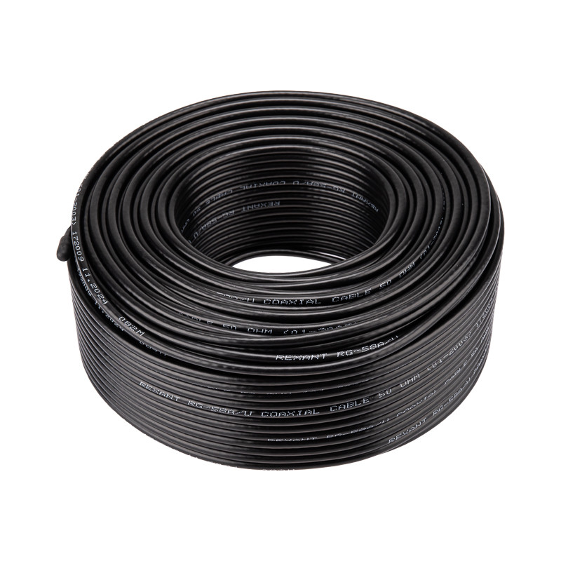Кабель коаксиальный RG-58 A/U 50 Ом Cu/Al/Cu 64% бухта 100м черный, REXANT (REXANT) 01-2003
