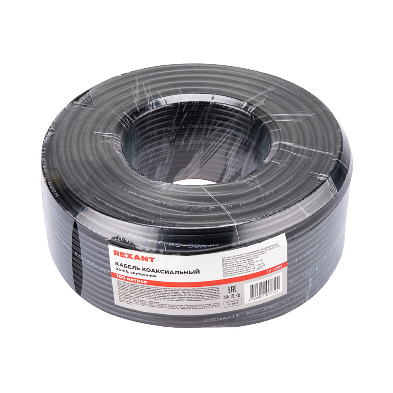 Полное описание товара Кабель коаксиальный RG-58 A/U 50 Ом Cu/Al/Cu 64% бухта 100м черный, REXANT (REXANT) 01-2003