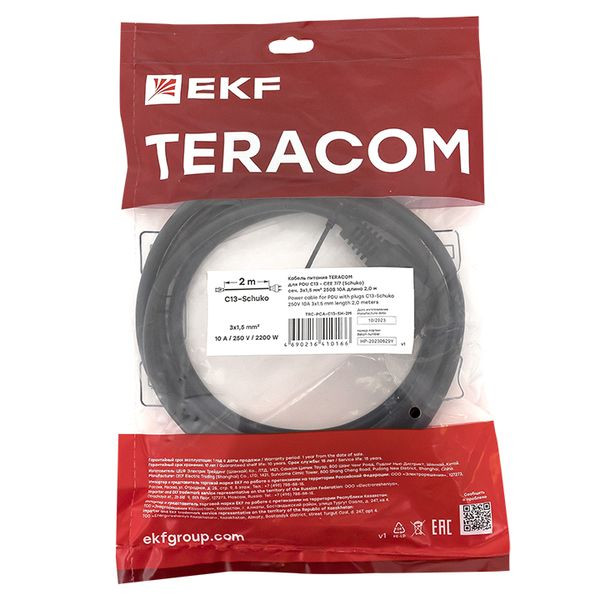 Полное описание товара Кабель питания TERACOM для PDU IEC 60320 C13 - CEE 7/7 (Schuko) сечение 3x1.5мм2 250В 10A длина 2.0 метра (EKF) TRC-PCA-C13-SH-2M