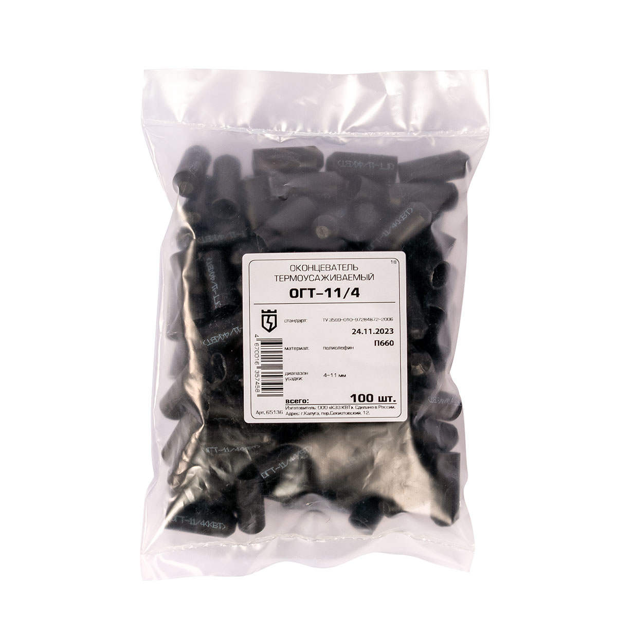 Полное описание товара Капа кабельная термоусаживаемая ОГТ-11/4 (100 шт) (КВТ) 65136