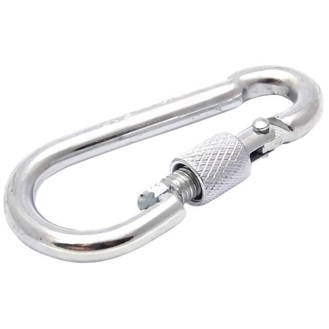 Производится из углеродистой стали, затем покрывается цинком. По форме напоминает кольцо овальной формы, заканчивающееся пристяжным механизмом с фиксатором. Данный карабин гарантирует максимально надежное соединение тросов, за счет закручивающегося фиксатора.