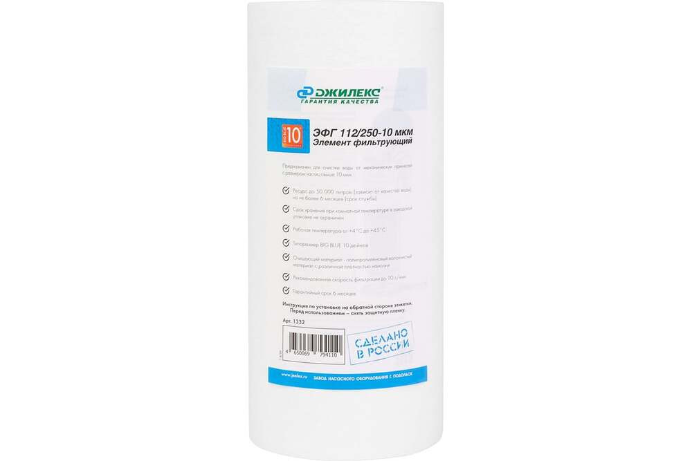 Полное описание товара Картридж для магистрального фильтра ЭФГ 112/250 10 BB полипропиленовый, от механических примесей 10 мкм, для х/в (Джилекс) 1332