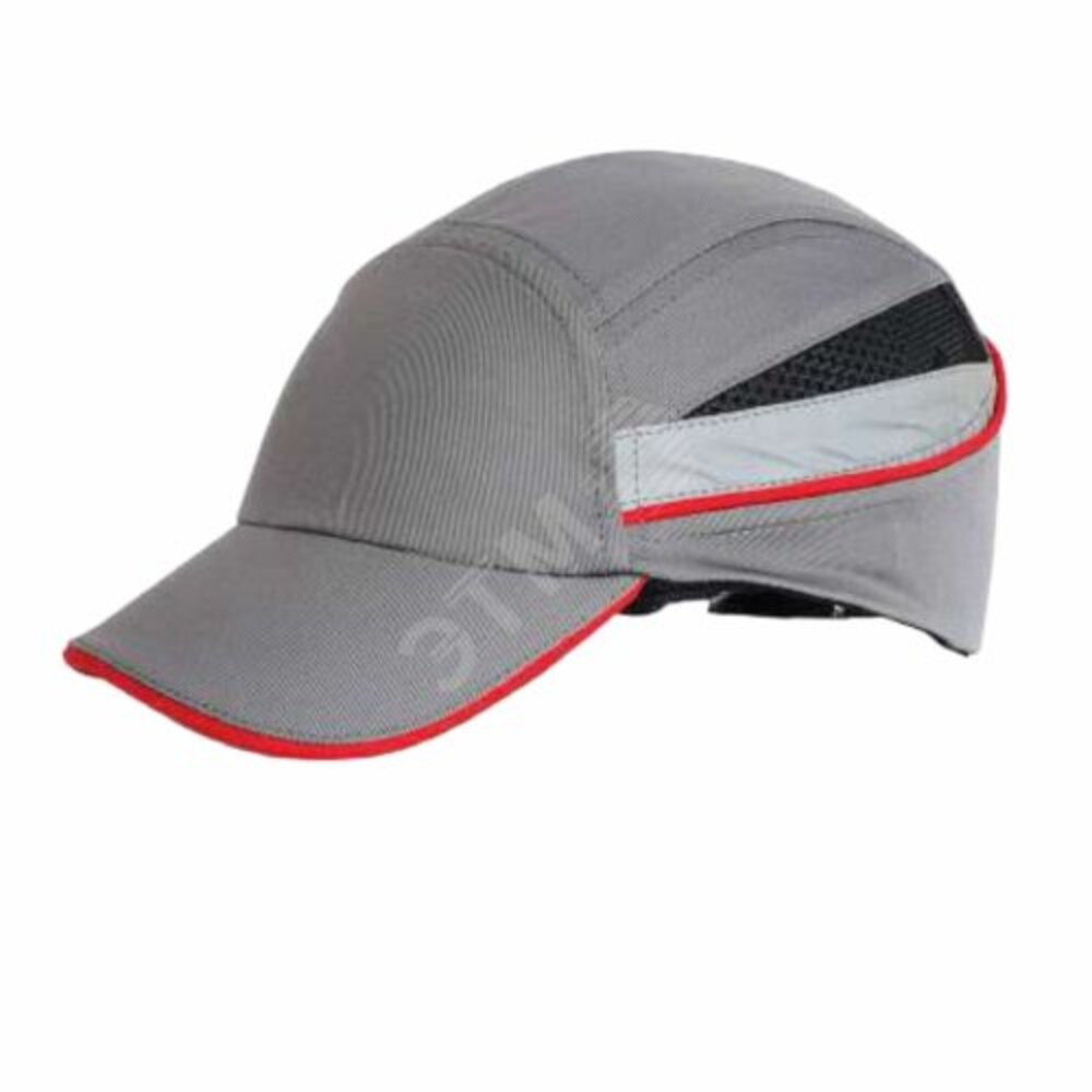 Каскетка защитная из ударопрочного корпуса и тканевой оболочки, козырек длиной 55 мм. С внутренней стороны корпуса каскетки имеется мягкий амортизатор. Наличие светоотражающих вставок и канта по козырьку и затылочной части тканевой оболочки. С боковых сторон вставки из сетчатой ткани. В затылочной части регулировка по размеру головы с 54 см по 59 см с помощью застежки-блочки.