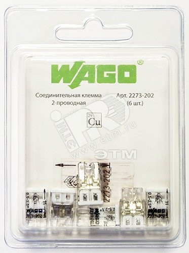 Полное описание товара Клемма 2-проводная компактная 0.5-2.5мм.кв (6шт) (WAGO) 2273-202-6