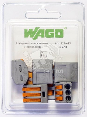 Клемма 3x0.08-2.5 (4)мм (5шт) (WAGO) 222-413-5