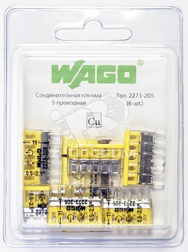Полное описание товара Клемма 5-проводная компактная (6шт) (WAGO) 2273-205-6