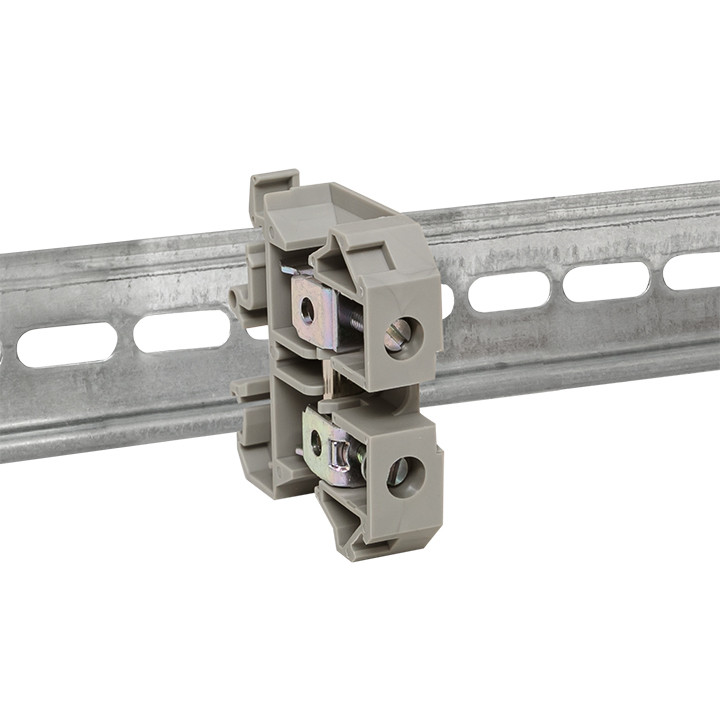 - Преимущества: Универсальная опора обеспечивает возможность простой установки клемм на рейки ?-типа (TH) и рейки G-типа|Затягивание центрального винта обеспечивает надежную фиксацию заземляющей клеммы на DIN-рейке|Токоведущая пластина и прижимная рама выполнена из анодированной стали |