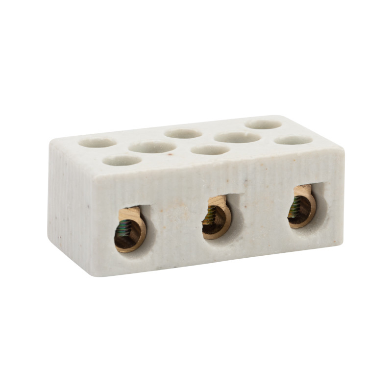 Клемма керамическая винтовая КВ 16 мм2, 3 пары контактов с крепежным отверстием, 45 шт (REXANT) 07-6228