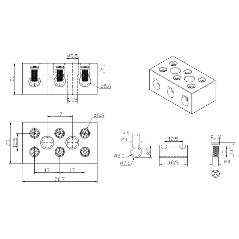 Полное описание товара Клемма керамическая винтовая КВ 16 мм2, 3 пары контактов с крепежным отверстием, 45 шт (REXANT) 07-6228