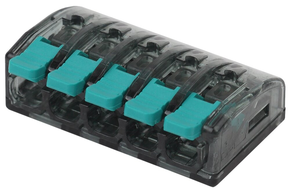 Полное описание товара Клемма компактная серии 415 с рычагом, 5 отверстия, 0,5-4 мм2 NO-224-48 (ЭРА) Б0043966