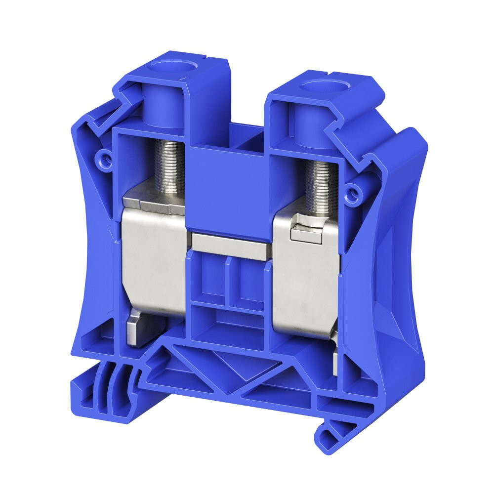 Проходная клемма с винтовым зажимом предназначена для соединения двух проводников. Монтаж на DIN-рейку OMEGA. Корпус выполнен из ПА 6.6 с классом горючести V0 UL-94. Температура эксплуатации: от -60 до +110 С. Синий цвет, 2 точки подключения, 35 мм2. 1 канал винтовых перемычек.