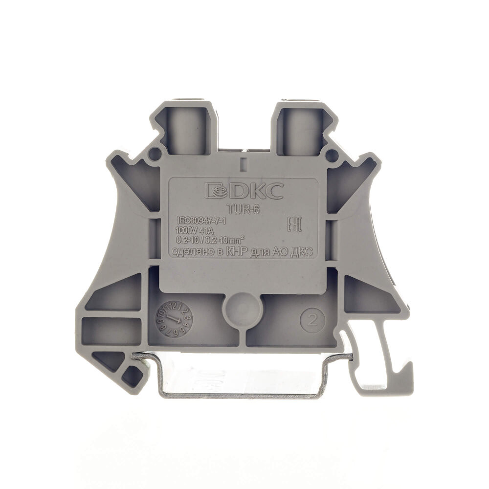 Клемма проходная, винтовой зажим, 2 точки подключения, 6 кв.мм, серая (DKC) TUR-6