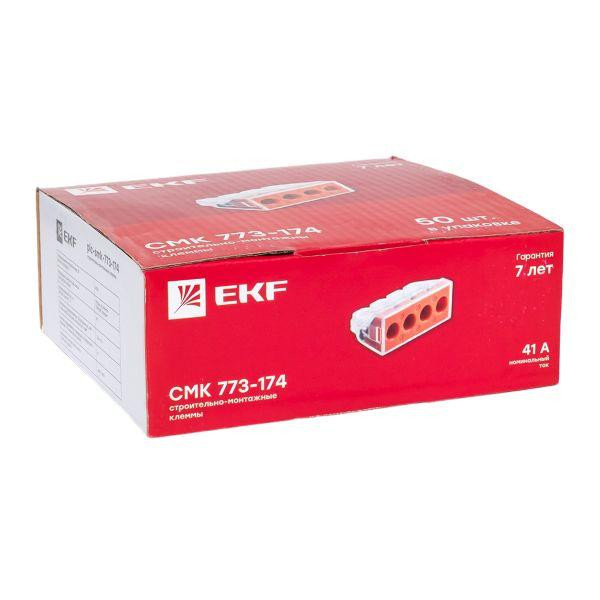 Полное описание товара Клемма СМК 773-174 с пастой 4 отверстия 2.5-6.0мм2 уп.50шт. PROxima (EKF) plc-smk-773-174