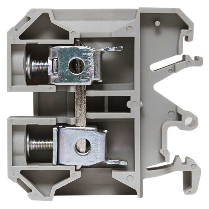 - Преимущества: Универсальная опора обеспечивает возможность простой установки клемм на рейки ?-типа (TH) и рейки G-типа|Затягивание центрального винта обеспечивает надежную фиксацию заземляющей клеммы на DIN-рейке|Токоведущая пластина и прижимная рама выполнена из анодированной стали |