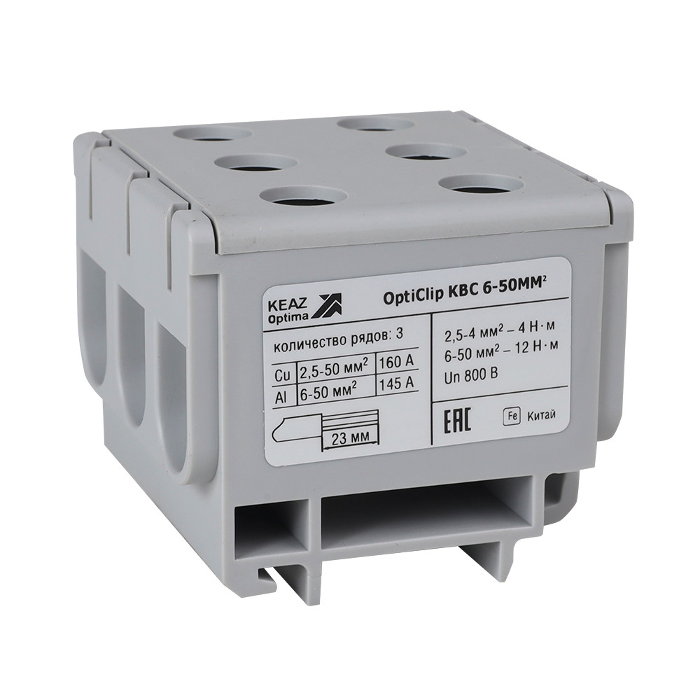 Полное описание товара Клемма вводная силовая тройная OptiClip КВС 6-50 серая (КЭАЗ) 351047