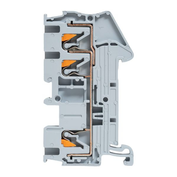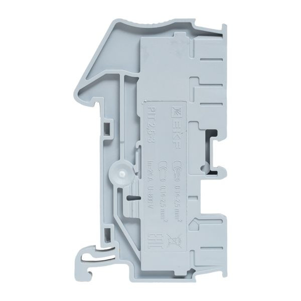 Полное описание товара Клеммная колодка пружинная 2,5 Push-in 3 вывода серая (EKF) PIT-2,5-3