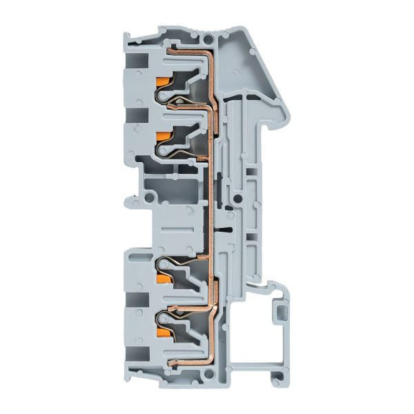 Клеммы Push-in позволяют максимально ускорить процесс монтажа и облегчить эксплуатацию, а два канала для перемычек позволят создать различные схемы подключения и распределения питания. Технология соединения Push-in позволяет простым способом подключать проводники от 1,5 до 6 мм? напрямую и без инструмента. Специальные контактные пружины гарантируют простоту ввода и высокое качество контакта.