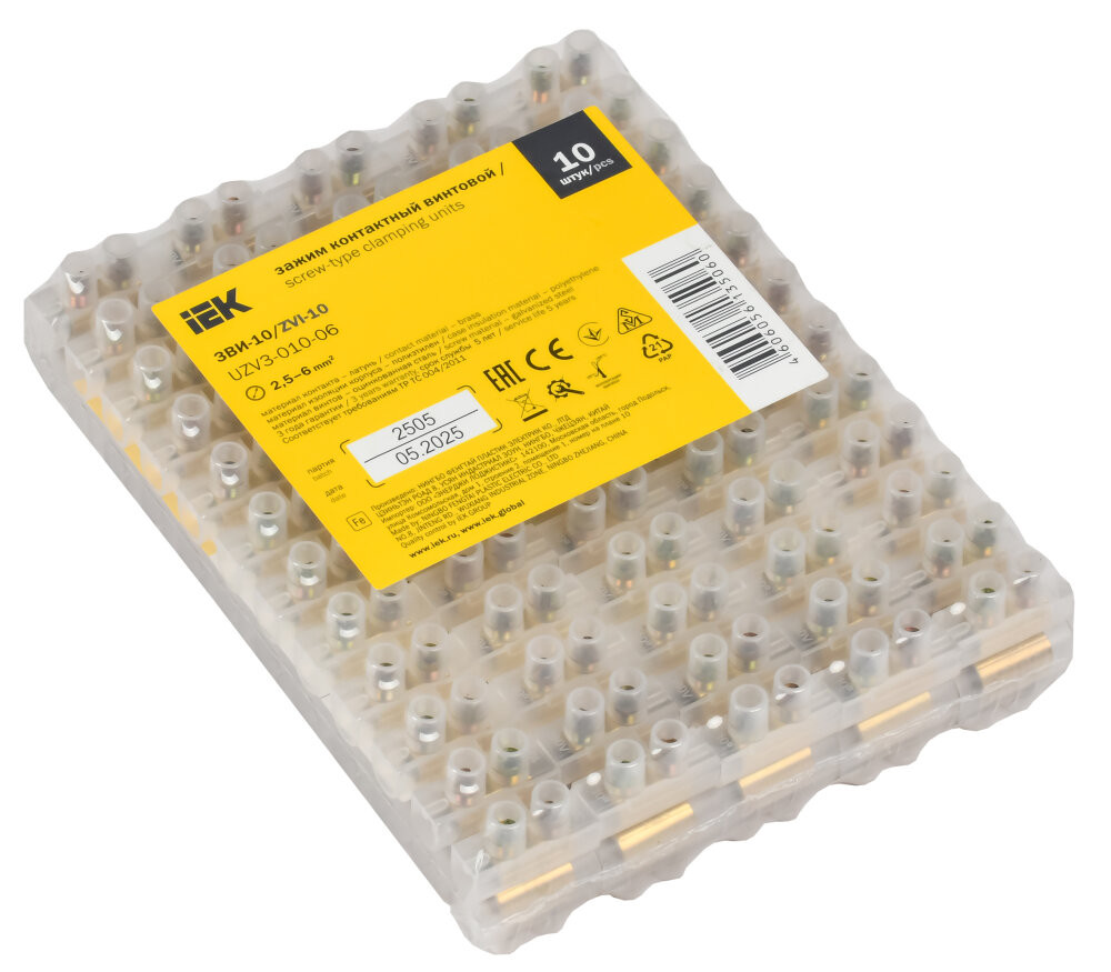 Полное описание товара Клеммник ЗВИ-10 2.5-6мм.кв. 12пар (IEK) UZV3-010-06