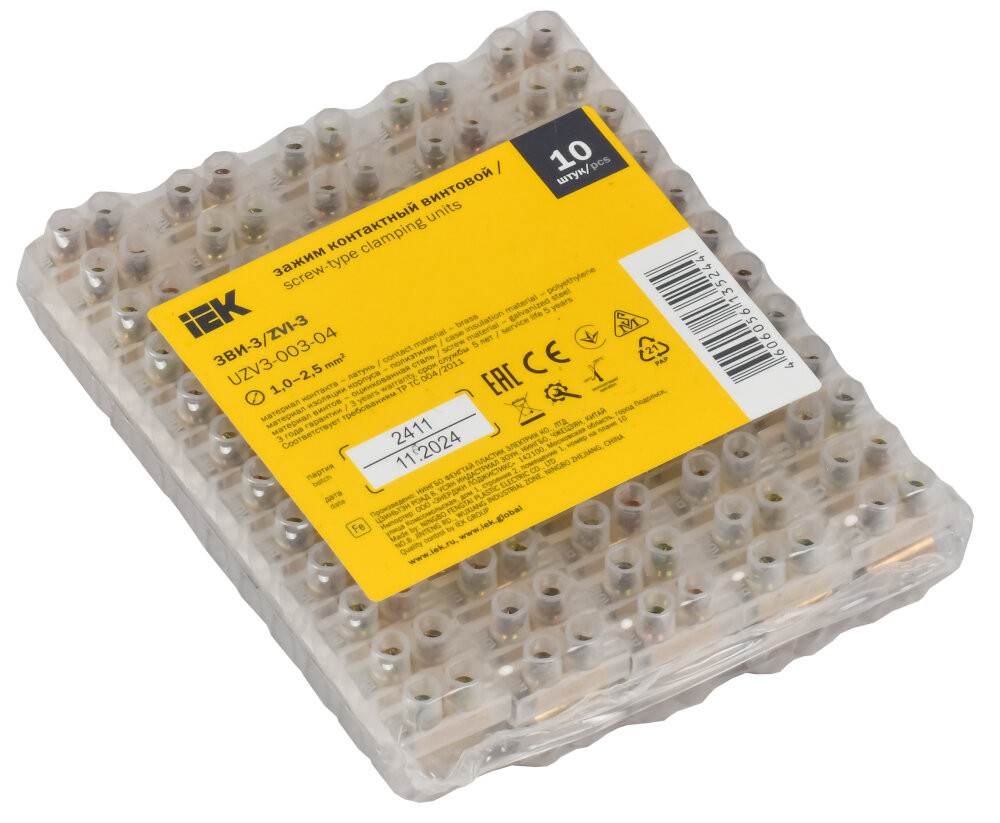 Полное описание товара Клеммник ЗВИ-3 1.0-2.5мм.кв. 12пар (IEK) UZV3-003-04