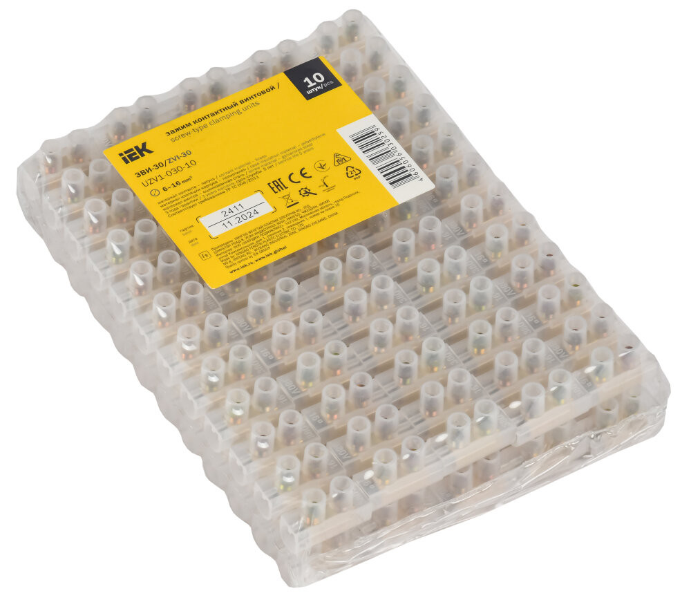 Полное описание товара Клеммник ЗВИ-30 6-16мм.кв. 12пар (IEK) UZV1-030-10