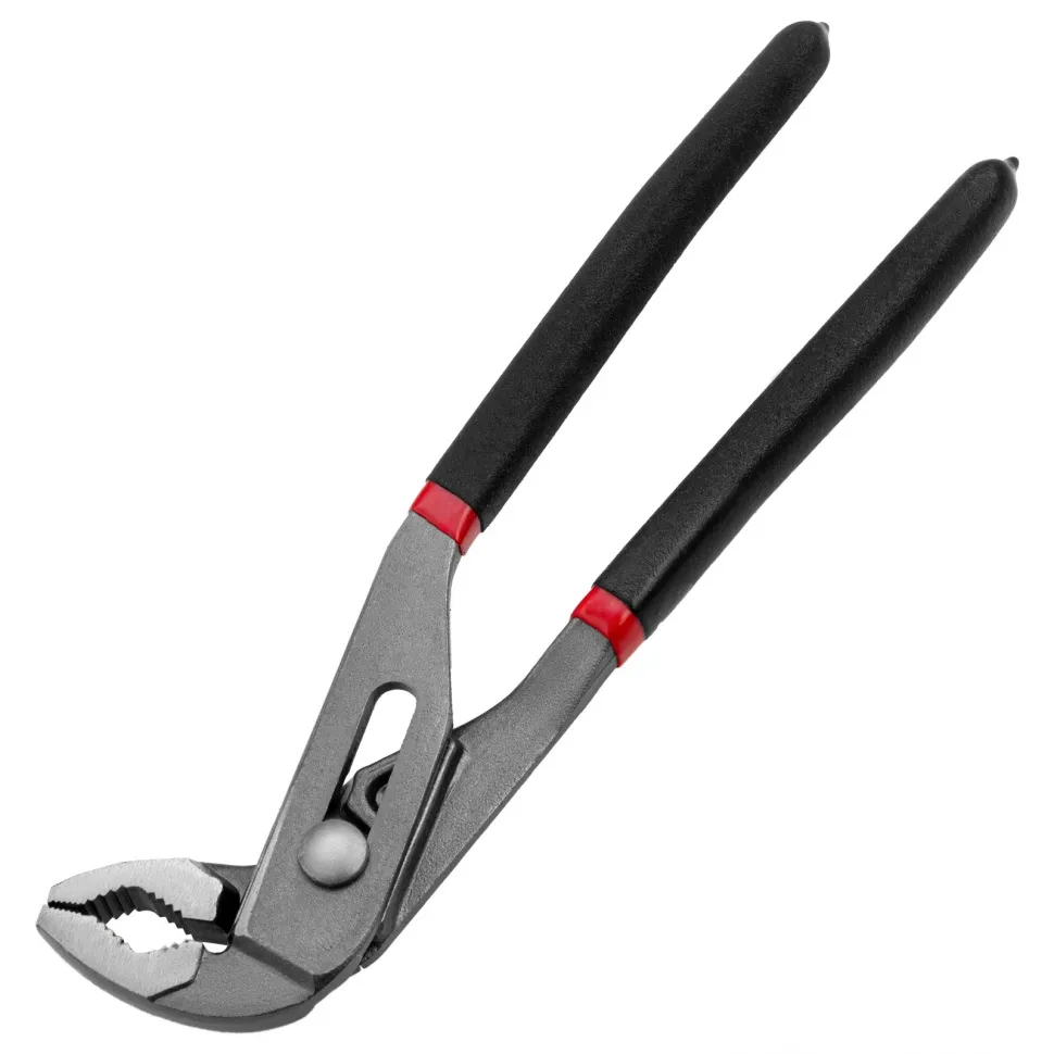 - Преимущества: Высокий ресурс - клещи из прочной углеродистой стали рассчитаны на долгий срок службы|Эффективная работа - острая насечка на губках облегчает захват предметов без специального рабочего профиля|Регулировка открытия зева - клещи способны захватывать разные по форме и размеру предметы|Эргономичность - обливные рукоятки надежно лежат в руке и не выскальзывают из ладони