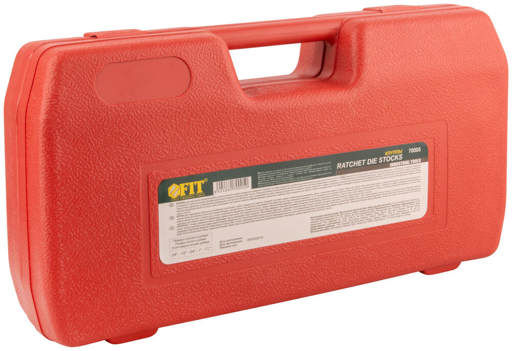 Набор трубных клуппов FIT IT предназначен для нарезания наружной резьбы на металлических трубах стандартного диаметра. Набор поставляется в удобном пластиковом чемоданчике и включает в себя несколько клуппов разных размеров, держатель с трещоткой и рычаг. Правильная геометрия режущих пластин клуппов обеспечивает чистоту и точность реза. Резцы выполнены из легированной стали, благодаря чему долго сохраняют свои режущие свойства. Корпус клуппов выполнен из высококачественного чугуна, что обеспечивает прочность и долговечность конструкции, остальные конструктивные элементы (кроме резцов) изготовлены из инструментальной стали с хромированным покрытием, предотвращающим коррозию. Клуппы легко очищаются от загрязнений после использования.