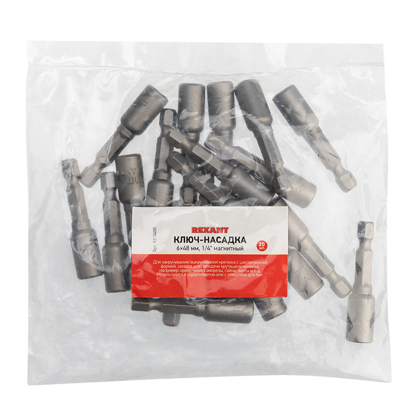 Полное описание товара Ключ-насадка 6х48 мм, 1/4 магнитная (REXANT) 92-0400